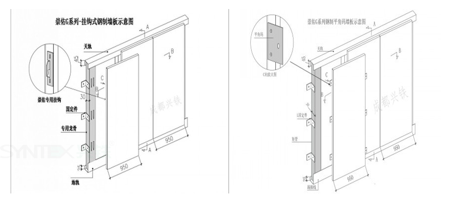 而興鐵的平角碼結構鋼制墻板,它是以平角碼作為固定結構,以錯縫對插的形式進行安裝,安裝簡單,收邊收口方便。